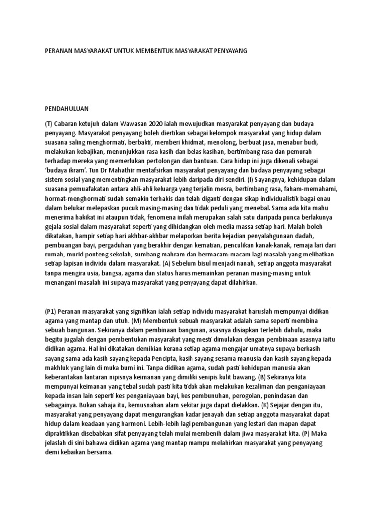 Selain itu didikan agama juga perlu untuk melahirkan masyarakat yang penyayang di negara kita. Karangan Bahasa Melayu SPM Masyarakat PenyayangSijil Pelajaran Malaysia. Peranan Sekolah Untuk Memupuk Budaya Penyayang Dalam Kalangan Murid-murid Karangan A - Karangan Berpandu 3.